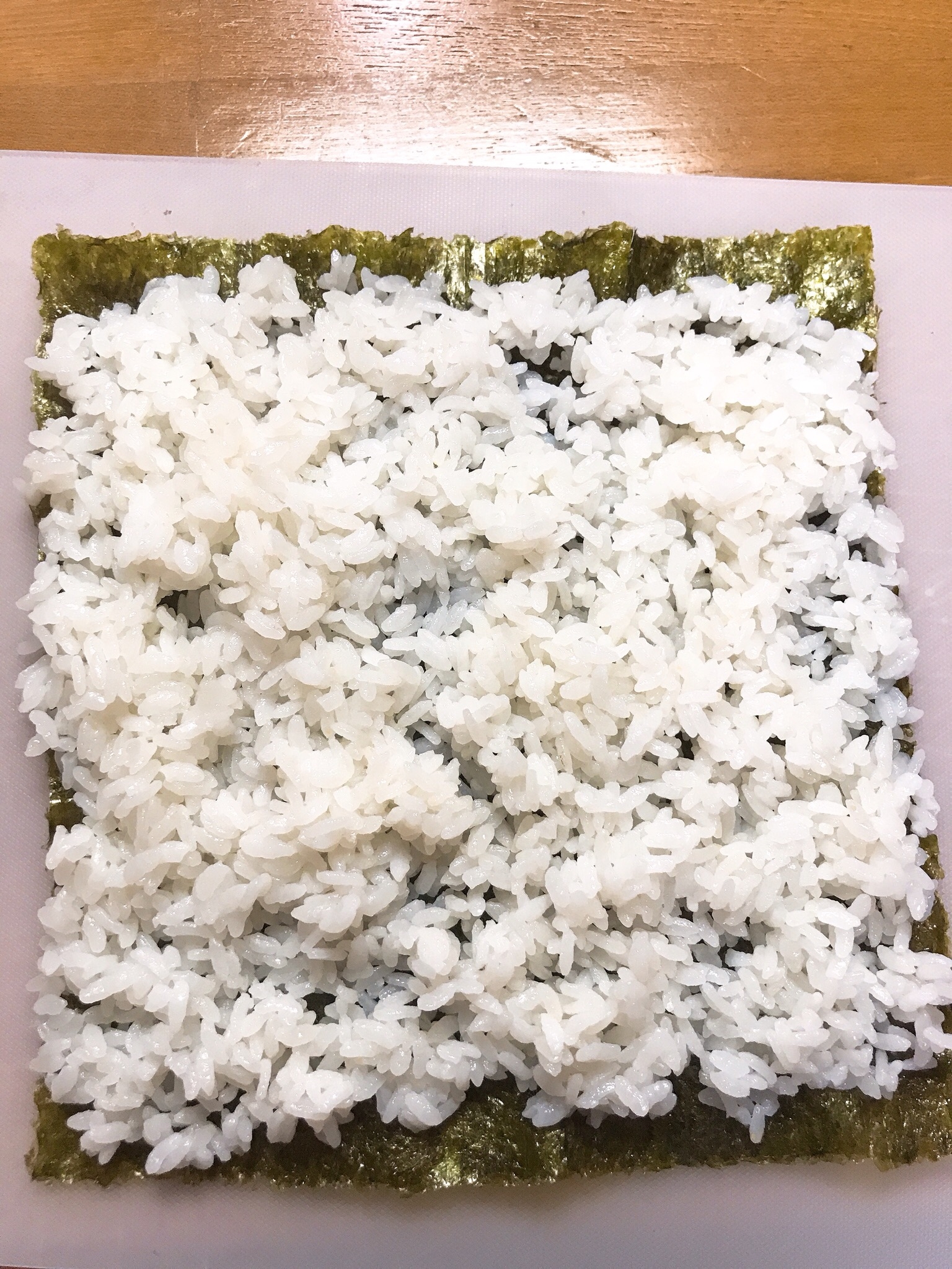 海苔巻き 具なし- すし飯に具を置く工程 2すし飯を広げたあと、わさびをぬって具を中心線に置いてください。 ≫生わさびの使い方とコツ 小さい子供さんや辛いものが苦手な方がおられる場合は「わさび」をぬいてください。 ↓↓↓ 手で具を押さえながら、巻きすごと持ち上げ、手前のご飯と向こうの側のご飯を合わせるように巻く。巻き終わりを下にして形を整える。上になる部分にゴマ油をぬり、白ゴマを振る。 まとめ 冷凍食材で手間なし!夏休みのお手軽昼ごはん